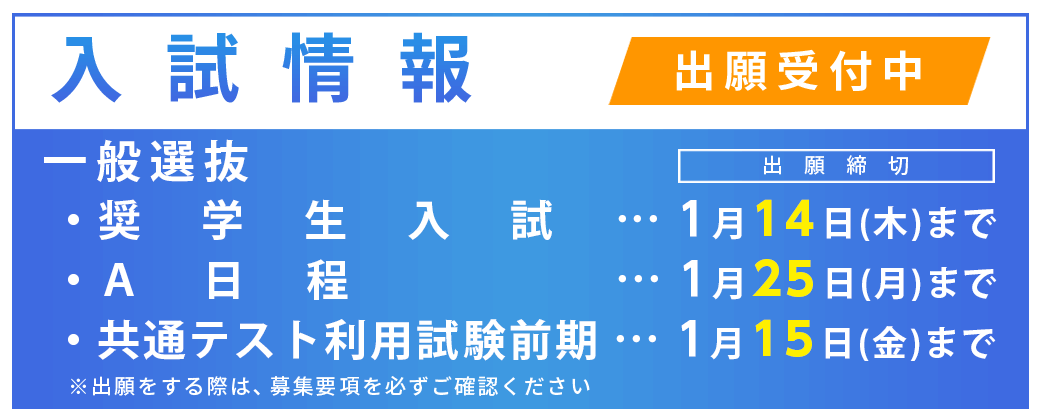 - 2020/12/17 奨学生入試、A日程、共通テスト利用試験前期の出願受付を開始します