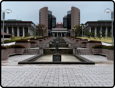 A.ひとつは中庭。ちょっとした息抜きをするのに最適な場所です。もうひとつは図書館棟です。最近、改装されて、とてもおしゃれな空間になりました。休憩はもちろん、ミーティングなどもできます。