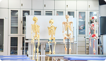 1年生の頃は、学部学科共通の医療分野で必要となる基礎授業を受けます。例えば「解剖学」は、骨模型を見ながらスケッチすることで身体を三次元的に捉えることができて、面白いですよ。