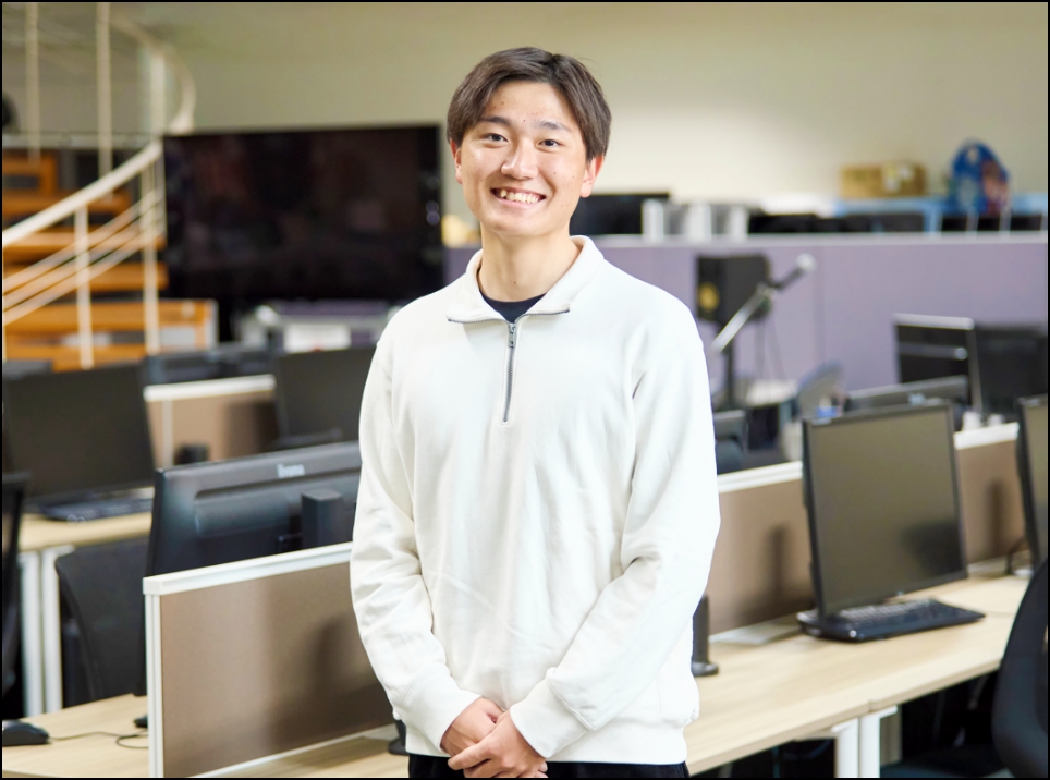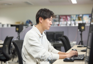 A.サッカーをしていたので、当初はスポーツトレーナー系に進もうかと考えていました。ただ、改めて自己分析をしてみると、映画やゲームも好きで。本学ならゲーム、映画、アニメなど幅広くメディアのことを学べると知り、ここだと思いました。元々は特に映画に関心がありましたが、「プロジェクト演習」でゲーム制作を経験したことから、ゲーム業界に進もう決めました。
