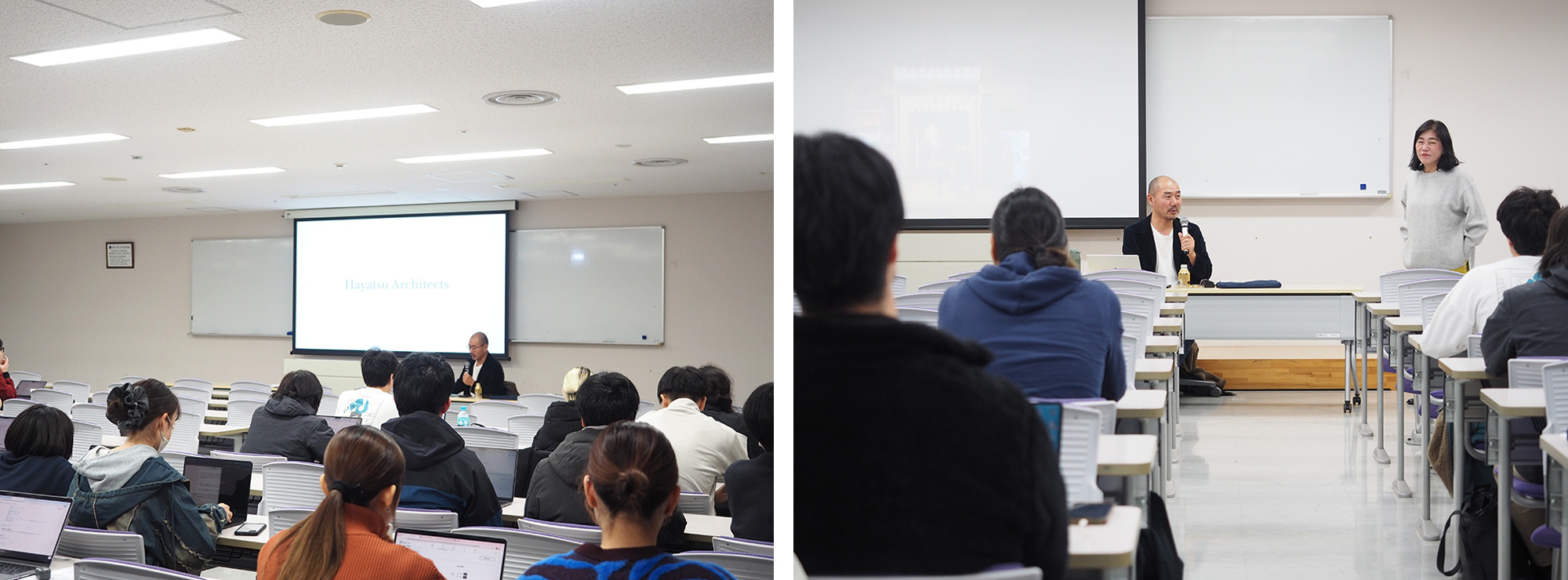 三日目は普通教室に舞台を移して特別講義を開催。早津氏のキャリアや日本建築への関心、体験型プロジェクトの事例などが紹介され、学生にとって視野を広げる学びの機会となりました。