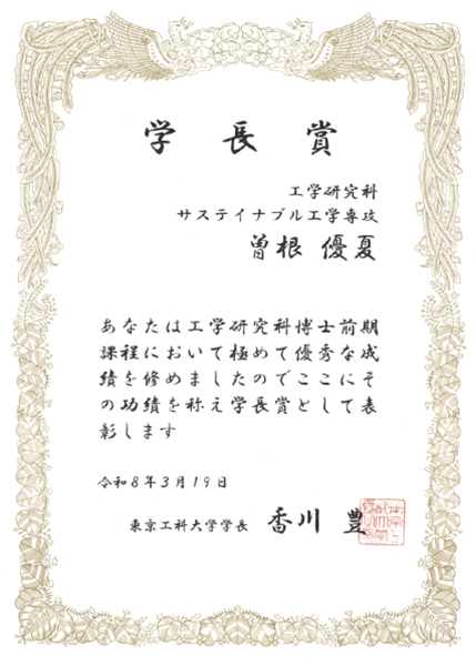 国際会議 International Conference on Green Chemistry and Engineering towards Sustainable Development – An Industrial Perspective で口頭発表した工学研究科修士課程触媒化学(原)研究室の川俣隆充君が優秀発表賞を受賞