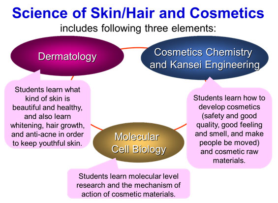 | Aesthetic Science Research Laboratory carries out the science of beauty and health, and the research on cosmetics, beauty foods, and beauty equipment for keeping skin healthy beautifully from a viewpoint of molecular cell biology. Specifically, they are research of 1. Beautiful skin materials for moisturizing, whitening, anti-aging, sebum control, and hair restoration, 2. Efficacy of cosmetic products, beauty foods, and beauty equipment, 3. Formulation development technology of the cosmetics for sensitive skin, 4. Percutaneous absorption technology of high molecular compounds using the electrical property of the skin. Practical knowledge and technology can be studied scientifically. |