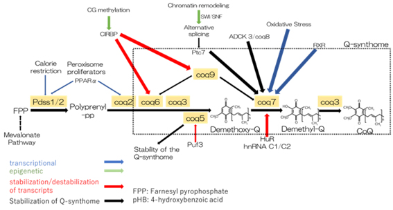 (1) Elucidation of the in vivo regulatory mechanism of coenzyme Q10 (2) Analysis of the coenzyme Q-binding protein prosaposin (3) Elucidation of the role of coenzyme Q in developmental processes. |