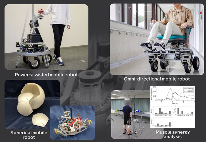 | Omni-directional mobile mechanisms and mobile robots that enables to travel over the difference in level or running over the rough terrain are developed. To reduce the physical burden on an operator of the mobile robot, power assist system is developed. Furthermore, to improve the operability and to realize a safe operation system, an operation support system based on the animal locomotion principle is studied. In addition, to understand human characteristics during robot manipulation, analysis using muscle synergy that can be obtained from surface electromyography and 3D-motion data is conducted. |