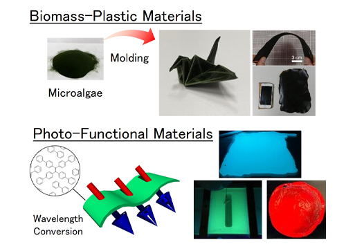 | In our laboratory, we conduct research with the aim of developing technologies which contribute to the realization of a sustainable society from both the environmental and energy perspectives. To achieve it, from a materials perspective, we have developped low-environmental-impact materials by directly using microalgae as raw materials to produce resins. Moreover, in terms of energy, we have researched optical functional materials which utilize molecules with aggregation-induced emission effect and photon upconversion technology, aiming for a wide range of uses for this energy. Although the functionality of individual chemical substances is insufficient, we utilize intermolecular interactions to develop materials with diverse functions. Through the development of these innovative functional materials, we are contributing to the realization of a sustainable society. |