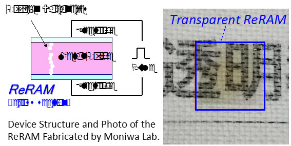 | We are developing a film-formed transparent non-volatile memory (ReRAM) to be attached on a window glass of a car, glasses, contact lenses, and an adhesive-plaster-shaped pulse-monitor etc. The R&D leads to realization of ultra lightweight, ultra small and ultra low-power wearable devices for the future IoT society of safety and comfort. |