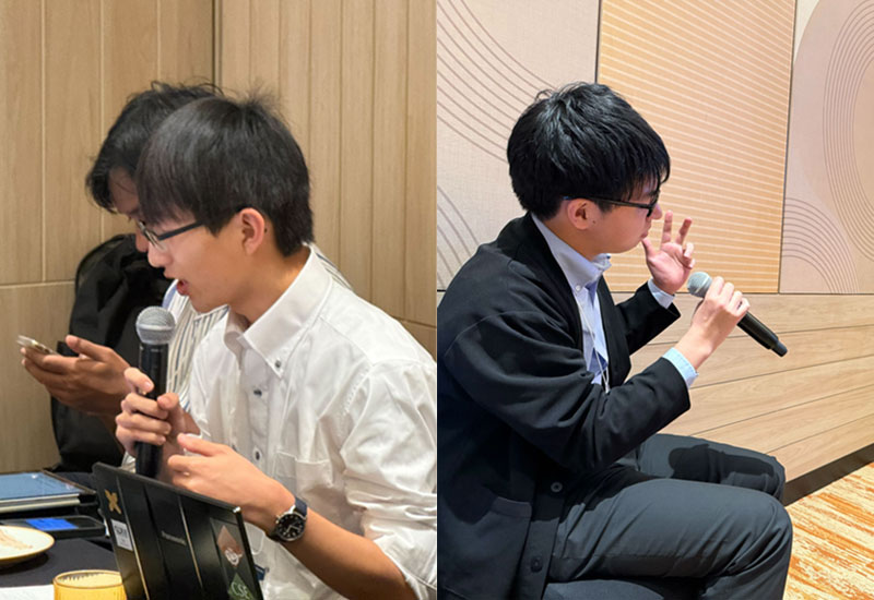 学部1年生:杉本拓海さん、中川唯温さんは自分以外の発表も聴講し、質疑応答、議論にも参加。セッションが盛り上がる。