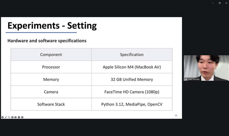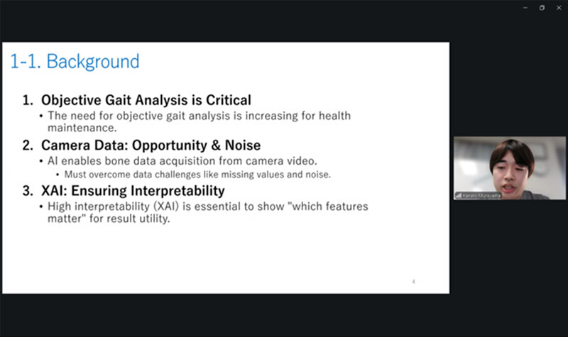 オンラインセッションでは、学部3年生:加藤優貴さん、村山奏人さん、学部4年生:山田祐平さんが日本からオンラインで発表。熱いプレゼンテーションが光る。