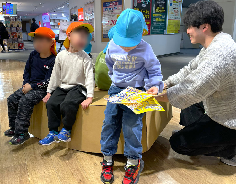 会期中には、地域連携の取り組みとして工作ワークショップも開催し、子どもから大人まで幅広い世代が参加くださり、地域の方々とともに「のってみたい観覧車」を考える機会となりました。さらに、近隣保育園の園児を招いたお披露目会も行い、子どもたちが作品を間近で体験する場も設けました。
