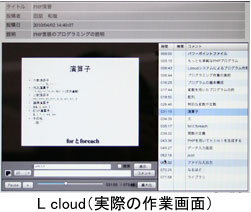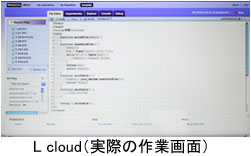 例えば、「授業クラウドプロジェクト」というものがあります。その一環として今年は、「プロジェクト実習」という3年生対象の授業内で、クラウドシステムを使っています。具体的には、ウェブブラウザを経由し、プログラム開発や実行ができるクラウドシステム“L cloud”を研究室で開発し、それを授業で使っているのです。
