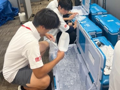 また、昨年度よりInBodyを用いた熱中症発症者の体組成測定を行い、発症の特徴把握と予防への応用を目指しています。今年度は発症者だけでなく、非発症者にも測定を拡大し、学生ボランティアもその補助を担当しました。