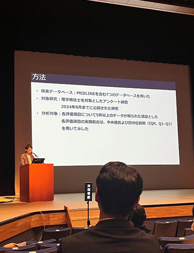 日本スポーツ理学療法学会学術大会は、スポーツ障害に対する理学療法に関する国内最大規模の学会であり、日本各地の理学療法士や研究者が集い、最新の知見を共有する場です。その中で、本学の研究員と学生が堂々と研究成果を発表し、スポーツ理学療法分野の第一線で活躍する専門家と積極的に議論を交わす貴重な機会となりました。本学およびヒューマンムーブメントセンターでは、今後も学生ならびに研究員の学術活動を積極的に支援し、科学的根拠に基づくスポーツ理学療法の発展に寄与してまいります。また、今回の経験を通じて得られた知見や学びを教育・臨床・研究へと還元し、より質の高い理学療法の実践を目指して取り組んでいきます。