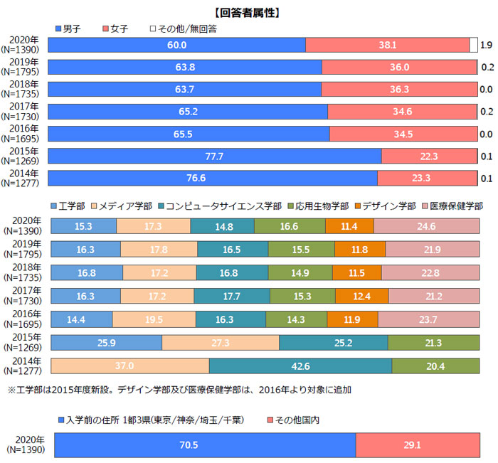 | 調査対象: | 2020年の東京工科大学全新入生(八王子キャンパス、蒲田キャンパス) | |